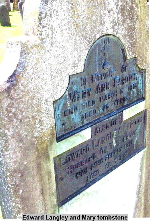 Her marriage to Edwin Gray was registered in Warwick in 1870 and there were at least two children, both sons, Edwin and Frank, whose births were registered in Foleshill, Coventry, in 1875 and 1879. There is nothing more on Mary herself, but evidence of continuing contact with her brother Edward Langley is shown in the attendance at Edward's funeral in 1926 of sons Edwin and Frank, Edward Langley's nephews; though not of Mary herself, who perhaps was no longer alive. At that time the nephews were living in Leamington.